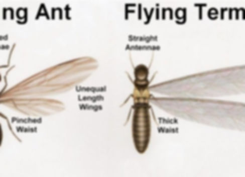 Ants also sometimes have wingsThe best way to tell the difference between ants and termites is to look for a pinched waist and wings of unequal length. Those two characteristics along with bent or elbowed antennae, equal flying ants. If you see a flying insect with wings of equal length and a waist that remains thick (does not narrow) and straight antennae, you most likely have termites.